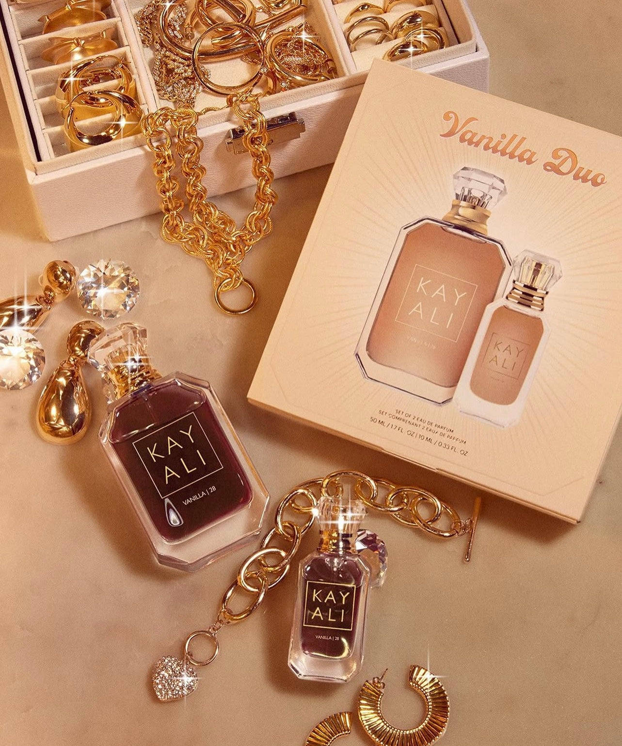 Esta temporada, regálate un momento de confort con nuestro estuche Iconic Vanilla de edición limitada. Dulce, adictivo y cálido, este irresistible estuche contiene nuestra fragancia de culto Vanilla | 28 Eau de Parfum en dos formatos distintos, ideal para superponer aromas en casa o cuando estás de viaje. KAYALI Vanilla | 28 celebra una de las notas más buscadas en perfumería gracias a su combinación armoniosa de vainillas ricas, azúcar moreno cálido y haba tonka aterciopelada. Del mismo modo que poner nata montada en tu postre favorito, Vanilla | 28 es la fragancia perfecta para complementar los aromas que más te gustan, y se revela igual de exquisita, seductora y reconfortante cuando se usa por sí sola.